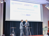Zum Schluss wurde außerdem der diesjährige Krebsinnovationspreis verliehen. Die Auszeichnung ging mitsamt 5.000 Euro an das bundesweite Netzwerk OnkoAktiv, das der Ideengeber und Gründer Prof. Dr. Joachim Wiskemann stellvertretend entgegennahm.