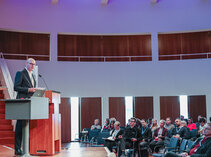 Nach der Begrüßung durch Prof. Weis richteten der Dekan der Medizinischen Fakultät, Prof. Dr. Lutz Hein, der wissenschaftliche Direktor des CCCF, Prof. Dr. Christoph Peters, sowie der Vorsitzende der Stiftung Deutsche Krebshilfe, Gerd Nettekoven zur Eröffnung ihre Grußworte an die Anwesenden. Sie betonten das Alleinstellungsmerkmal sowie die Relevanz dieser Professur für den Standort des Universitätsklinikums Freiburg und würdigten die Verdienste von Prof. Weis. Der Dekan bekräftigte die erklärte Absicht der Fakultät zur Neubesetzung der Professur nach dem Ausscheiden von Prof. Weis und kündigte die baldige Ausschreibung der Professur an.