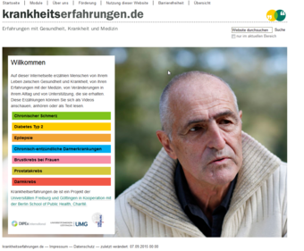 Die Universitäten Freiburg und Göttingen haben in Zusammenarbeit mit der Berlin School of Public Health, Charité, eine Internetseite namens "Krankheitserfahrungen.de" aufgebaut. Der Einleitungstext lautet:
