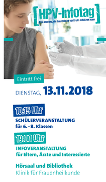 Eine Impfung, die Jugendliche vor Krebs schützen kannDienstag, 13. November 2018 - Hörsaal der Klinik für Frauenheilkunde