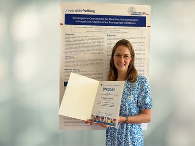 Dr. Alexandra Geffroy, Oberärztin in der Klinik für Frauenheilkunde des Universitätsklinikums Freiburg, hat auf dem diesjährigen Kongress der Deutschen Gesellschaft für Senologie Ende Juni in Stuttgart den Posterpreis für ihre Arbeit „Senologische Operationen bei Geschlechtsinkongruenz: retrospektive Analyse eines Transgender-Kollektivs“ gewonnen. Dabei geht es um die wissenschaftliche Untersuchung von Brustoperationen bei Menschen, deren Geschlechtsidentität nicht mit ihrem bei der Geburt zugewiesenen Geschlecht übereinstimmt. Der Preis ist mit 300 Euro dotiert.