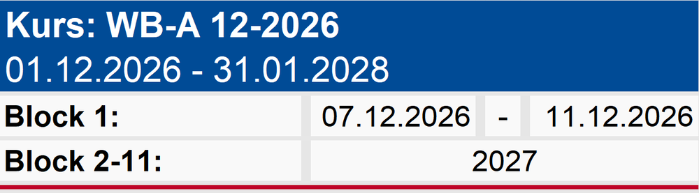 Die nächste Weiterbildung startet voraussichtlich im Dezember 2027.