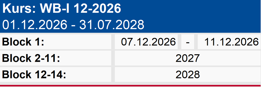 Die nächste Weiterbildung startet voraussichtlich im Dezember 2027.