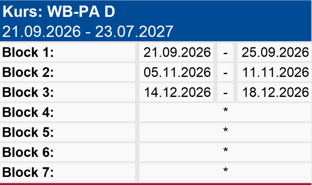 Die nächste Weiterbildung startet voraussichtlich im Januar 2027.