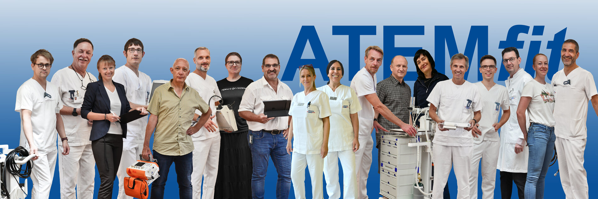ATEMfit integriert die Planung, Instandhaltung und Weiterentwicklung moderner Medizingeräte- und Informationstechnologie. Unser interdisziplinäres Team aus Wissenschaftler*innen, Medizintechniker*innen, Ingenieur*innen, EDV-Spezialist*innen, Hygienefachkräften, Fachpflegekräften und Ärzt*innen ermöglicht mit langjähriger Praxiserfahrung die Translation technischer Grundlagenforschung in die klinische Arbeitsumgebung. Die Infrastruktur von ATEMfit erlaubt die Entwicklung spezieller Medizingeräte von der Planung bis zur technischen Fertigung. Darüber hinaus gehören Beratung gesundheitspolitischer Institutionen, Bau- und Entwicklungsprojekte, Großgerätegutachten sowie die Aus- und Weiterbildung verschiedener Berufsgruppen zu unserem Spektrum.