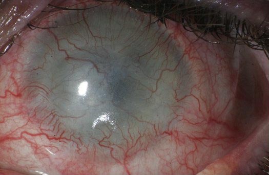 Komplette Limbusstammzellinsuffizienz mit Gefäß- und Bindehautwachstum auf die Hornhaut nach Verätzung des Auges. In dieser Ausgangssituation kann nur durch eine Transplantation von Limbusstammzellen in Kombination mit einer Hornhauttransplantation eine Verbesserung der Sehschärfe und Stabilisierung der Augenoberfläche erreicht werden. Die Kombination dieser Eingriffe mit einer Amnionmembrantransplantation reduziert die postoperative Entzündung und verbessert die Wundheilung.