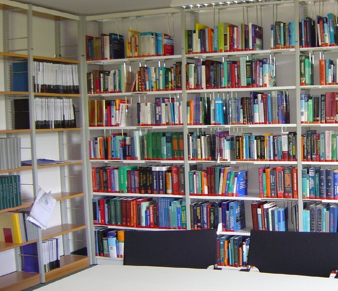 Der Bibliotheksraum wird auch als Besprechungsraum benutzt und ist nicht immer zugänglich.