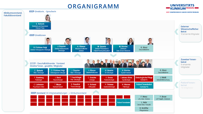 Tumorzentrum Freiburg - CCCFDas Tumorzentrum Freiburg - CCCF ist eine Einrichtung des Universitätsklinikums Freiburg. Wir verstehen uns als Koordinationsstelle aller Aktivitäten am Universitätsklinikum, die sich mit Onkologie befassen. Die Deutsche Krebshilfe hat das Tumorzentrum Freiburg - CCCF als eines der 15 deutschen Onkologischen Spitzenzentren zertifiziert und unterstützt uns mit Fördergeldern.