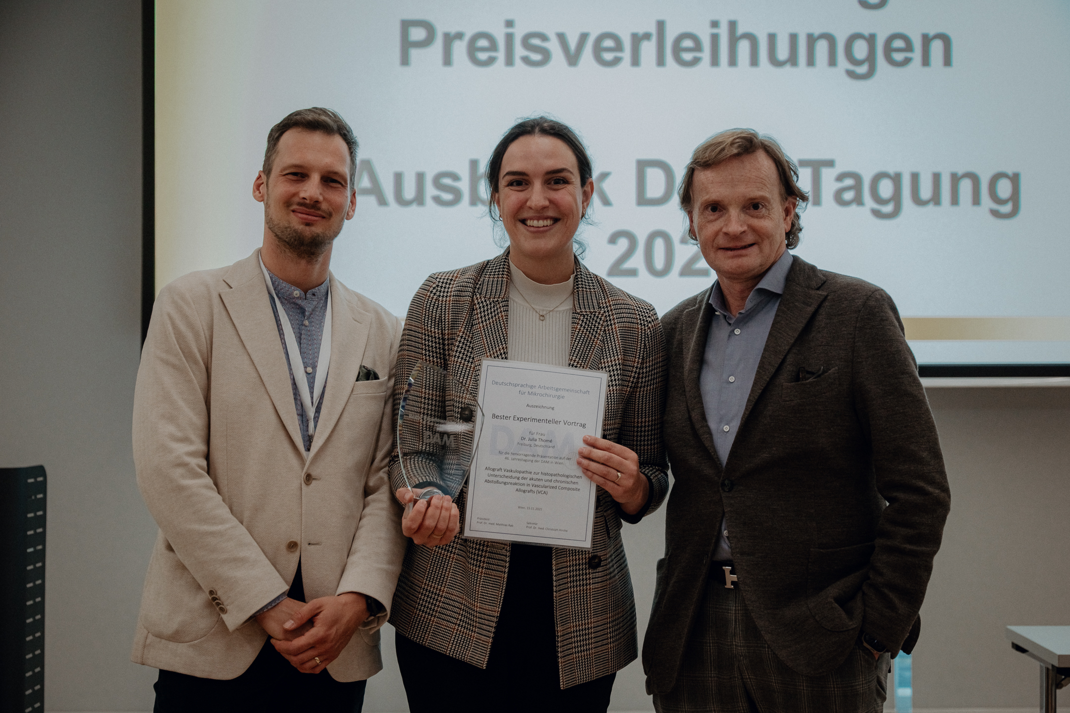 Dr. Julia Thomé präsentierte die Allograft-Vaskulopathie zur histopathologischen Unterscheidung der akuten und chronischen Abstoßungsreaktion in Vascularized Composite Allografts (VCA) vor und gewann den Preis für den besten experimentellen Vortrag.