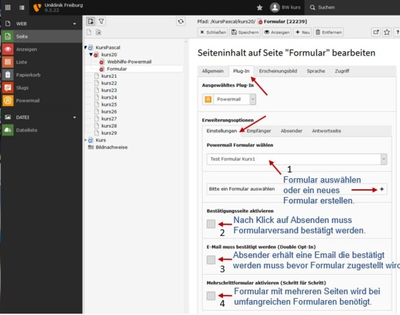 - Im Verzeichnisbaum auf den Menüpunkt wo das Formular erstellt werden soll