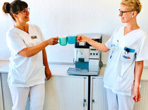 Insbesondere das Personal, das auf den Stationen mit Covid-19 infizierten Patient*innen arbeitet, sieht sich außergewöhnlich herausfordernden (Arbeits-)Zeiten und neuen Abläufen gegenüber. Für diese Stationen wurde ein umfassendes Unterstützungsprogramm ins Leben gerufen: Essen, das mehrmals täglich direkt auf die Stationen geliefert wurde, Kaffeeautomaten und die Einrichtung von neuen Ruheräumen unter speziellen Hygieneregeln. Eine Spende für das Unterstützungsprogramm war eine schnelle und effektive Möglichkeit, unseren Beschäftigten etwas Gutes zu tun.