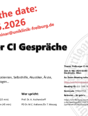 Auch in diesem Jahr organisieren wir für Sie wieder interessante Veranstaltungen in der Klinik für Hals-, Nasen- und Ohrenheilkunde des Universitätsklinikums Freiburg.