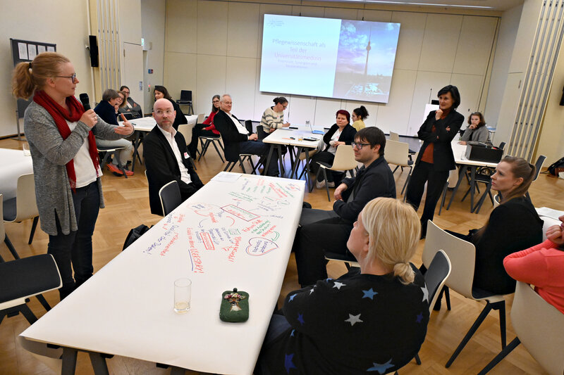 Eindrücke von der Session „Pflegewissenschaft als Teil der Universitätsmedizin: Potenziale, Synergien und Kooperationen", die u. a. von Frau Prof. Christiane Kugler, Leiterin des Instituts für Pflegewissenschaft an der Albert-Ludwigs-Universität Freiburg, initiiert und moderiert wurde. NUM/ © Jung-Wolff