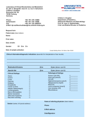 - Trockenblut (Enzymdiagnostik kostenfrei über verschiedene Diagnostikinitiativen, nur nach telefonischer Rücksprache)