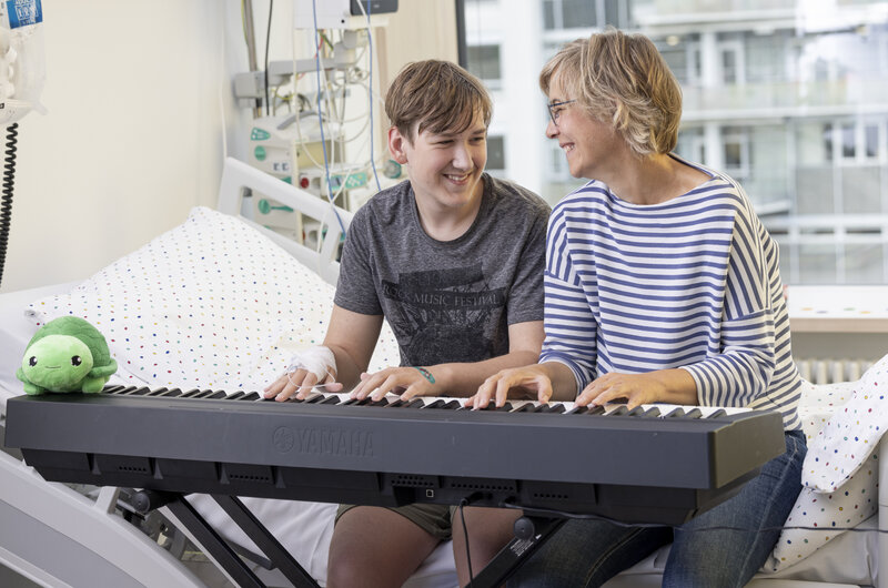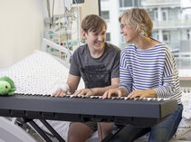 Die Musiktherapie arbeitet mit Klang, Melodien und gemeinsames Improvisieren, um emotionale Blockaden zu lösen, Stress abzubauen und das Wohlbefinden zu fördern. Sie ist eine wertvolle Begleitung während des stationären Aufenthalts, um Ängste zu mindern und positive Erlebnisse zu schaffen.