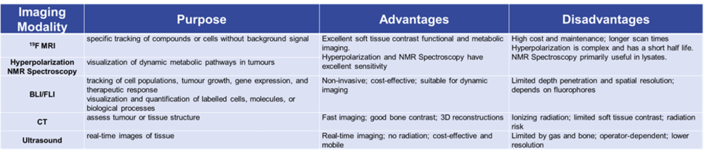The Small Animal Imaging Advisory Board will assist the PIs of the CRC1479 initiative in selecting the most suitable imaging methods to address the scientific questions posed by their projects. Bioluminescence or fluorescence imaging (BLI/FLI), NMR spectroscopy, MR hyperpolarisation, ultrasound, and CT-based imaging will be provided. Each of these modalities has its own strengths and weaknesses and can complement one another (Table 1). Consequently, it may be challenging for individual group leaders to decide which imaging modality is best suited to their specific questions. The Advisory Board will serve as a forum to support project coordinators in defining the optimal approach for their specific requirements.