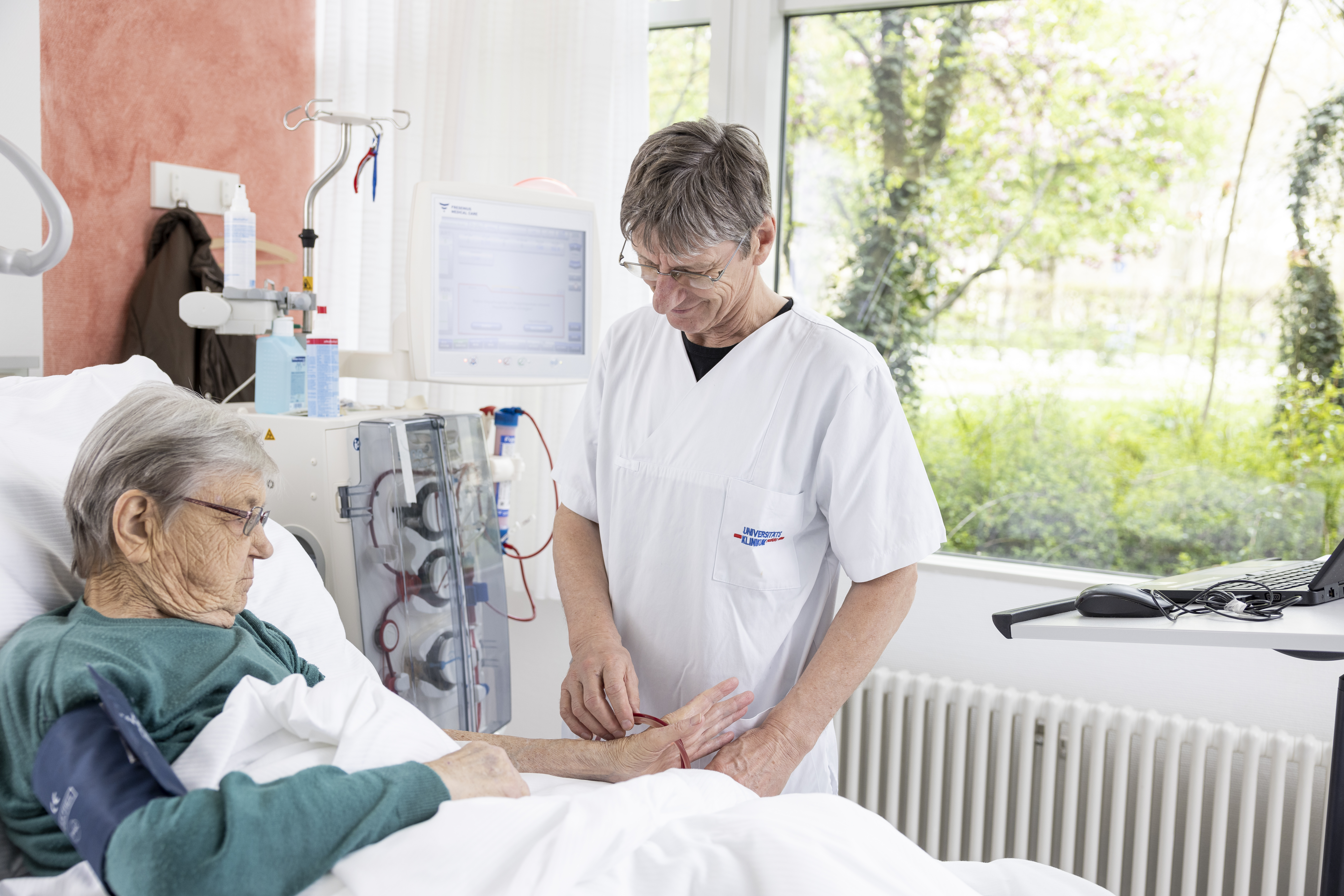 Unverzichtbar für das Gesamtklinikum sind unsere rund um die Uhr verfügbaren Dialysebehandlungen auf den 8 Intensivstationen der Universitätsklinik. So werden jährlich über 1.000 kontinuierliche Dialyseverfahren (CVVHD) für schwerstkranke intensivstationspflichtige Patientinnen und Patienten durchgeführt.