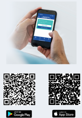 So funktioniert die Nutzung: Für die Anmeldung in der App benötigen Sie einen persönlichen Aktivierungscode. Sobald uns Ihre aktuelle Mobilfunknummer vorliegt und ein Termin in einer unserer Ambulanzen vereinbart ist, erhalten Sie diesen Code automatisch per SMS vor Ihrem Termin. Zusätzlich bekommen Sie bei Ihrem Besuch an der Anmeldung einen Ausdruck mit einem QR-Code, mit dem Sie Ihr App-Konto vollständig einrichten können.
