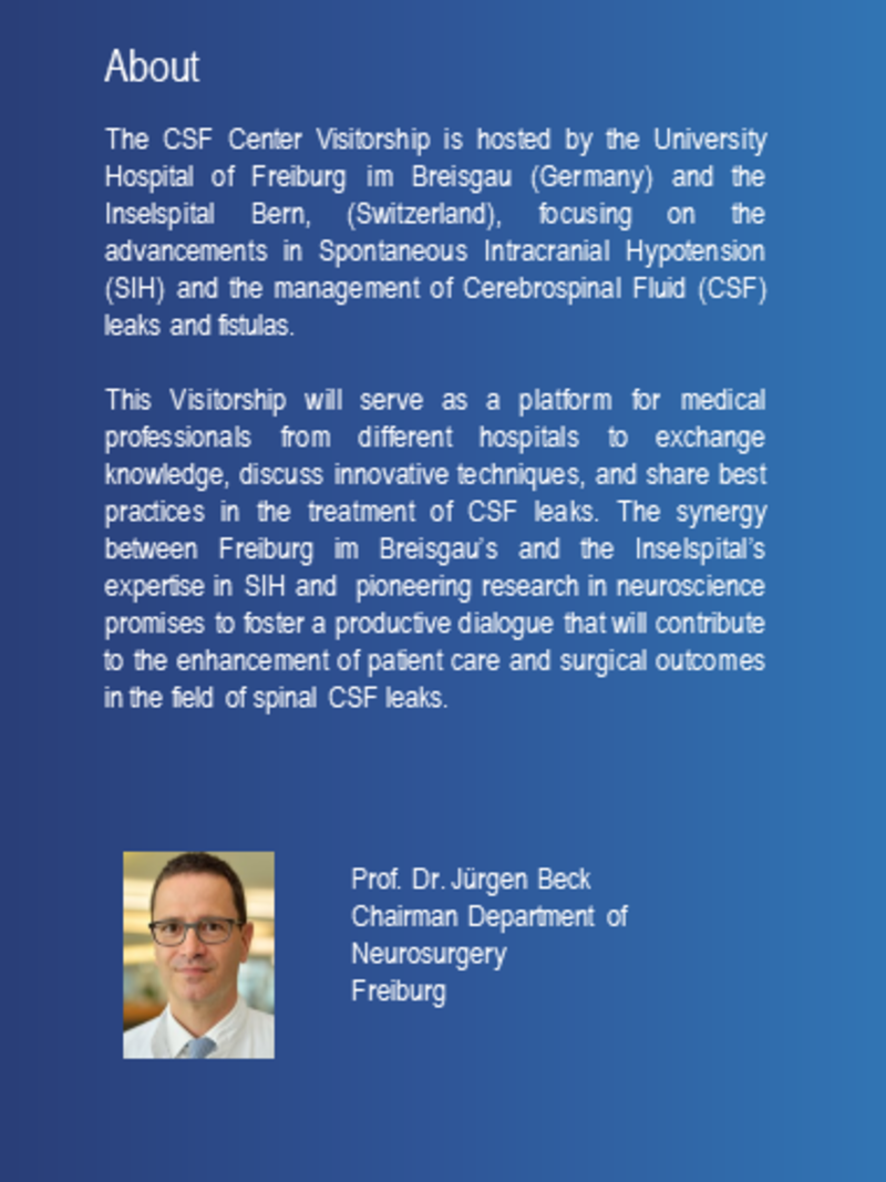 The CSF Visitorship ist organized togther with the CSF Teams of Freiburg and of the Inselspital Bern.