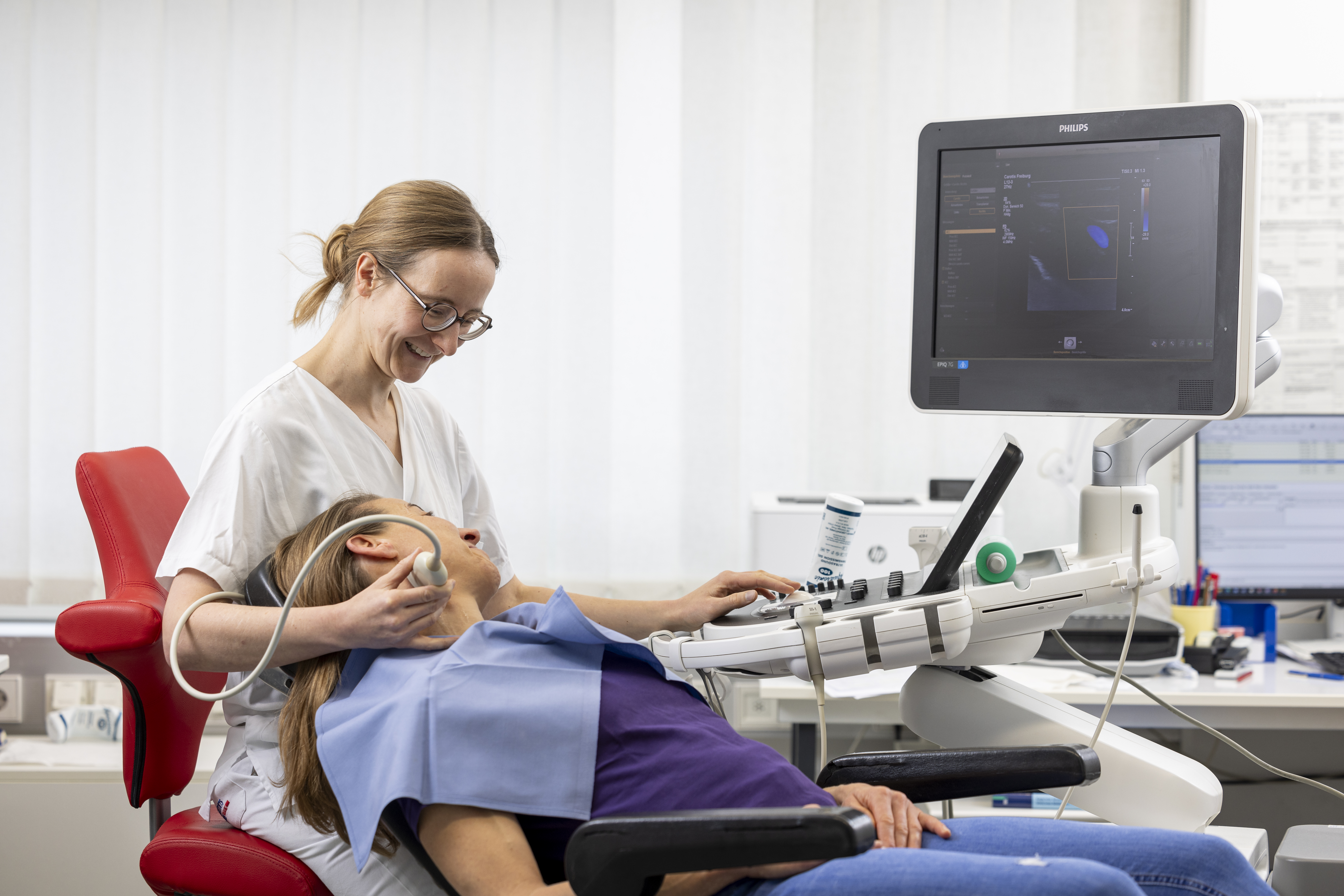 In der Neurologischen Universitätsklinik Freiburg bieten wir das gesamte Spektrum der neurologischen Ultraschalldiagnostik auf hochmodernen Ultraschallgeräten an. Pro Jahr führen wir etwa 5.000 Untersuchungen durch, vor allem von Blutgefäßen, aber auch von anderen Strukturen des Nervensystems.