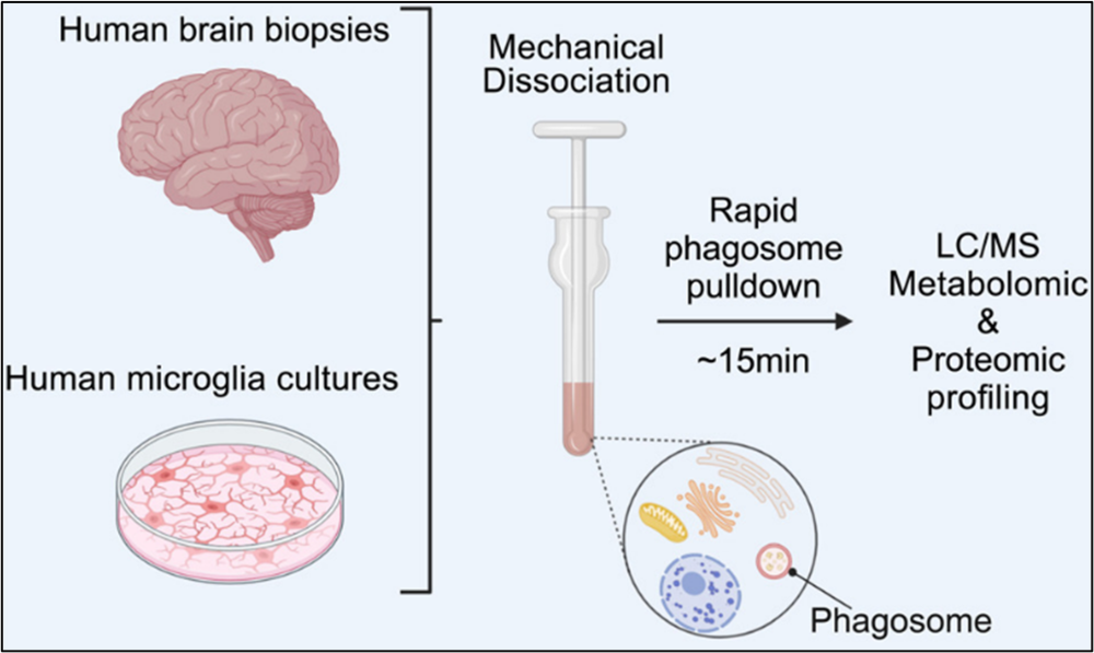 Our previous work established a method to isolate intact human microglial phagosomes. Multiomic profiling