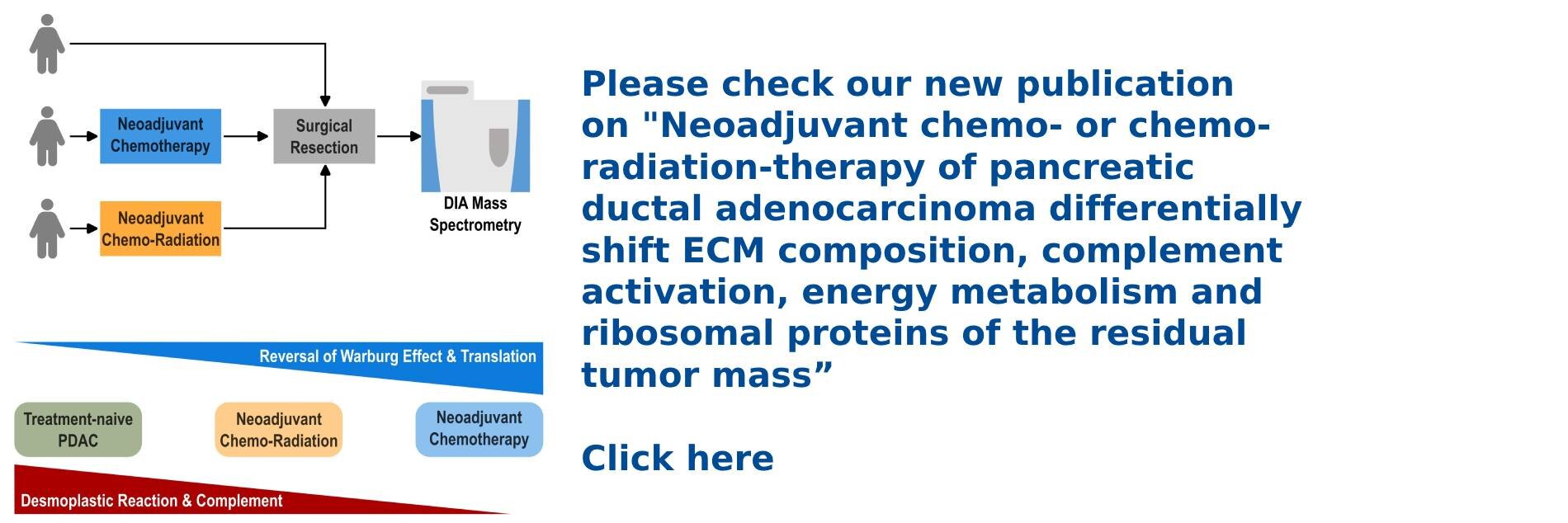 - Werner J, Bernhard P, Cosenza-Contreras M, Pinter N, Fahrner M, Pallavi P, Eberhard J, Bronsert P, Rückert F, Schilling O. Targeted and explorative profiling of kallikrein proteases and global proteome biology of pancreatic ductal adenocarcinoma, chronic pancreatitis, and normal pancreas highlights disease-specific proteome remodelling. Neoplasia. 2023 Feb;36:100871. doi: 10.1016/j.neo.2022.100871. Epub 2023 Jan 5. PMID: 36610378; PMCID: PMC9841175.