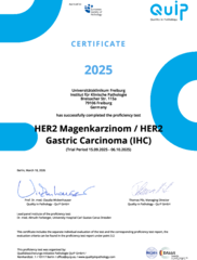 Neben unseren internen Qualitätsprüfungen beteiligen wir uns kontinuierlich an externen Qualitätsprüfungen in Form von Ringversuchen bei der Qualitätssicherungs-Initiative Pathologie QuIP GmbH.