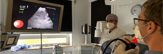 Beim endobronchialen Ultraschall wird bronchoskopisch eine Ultraschallsonde in die Trachea eingeführt. Mittels dieser Sonde lassen sich die mediastinalen und hiliären Lymphknoten beurteilen und unter Ultraschallkontrolle biopsieren.