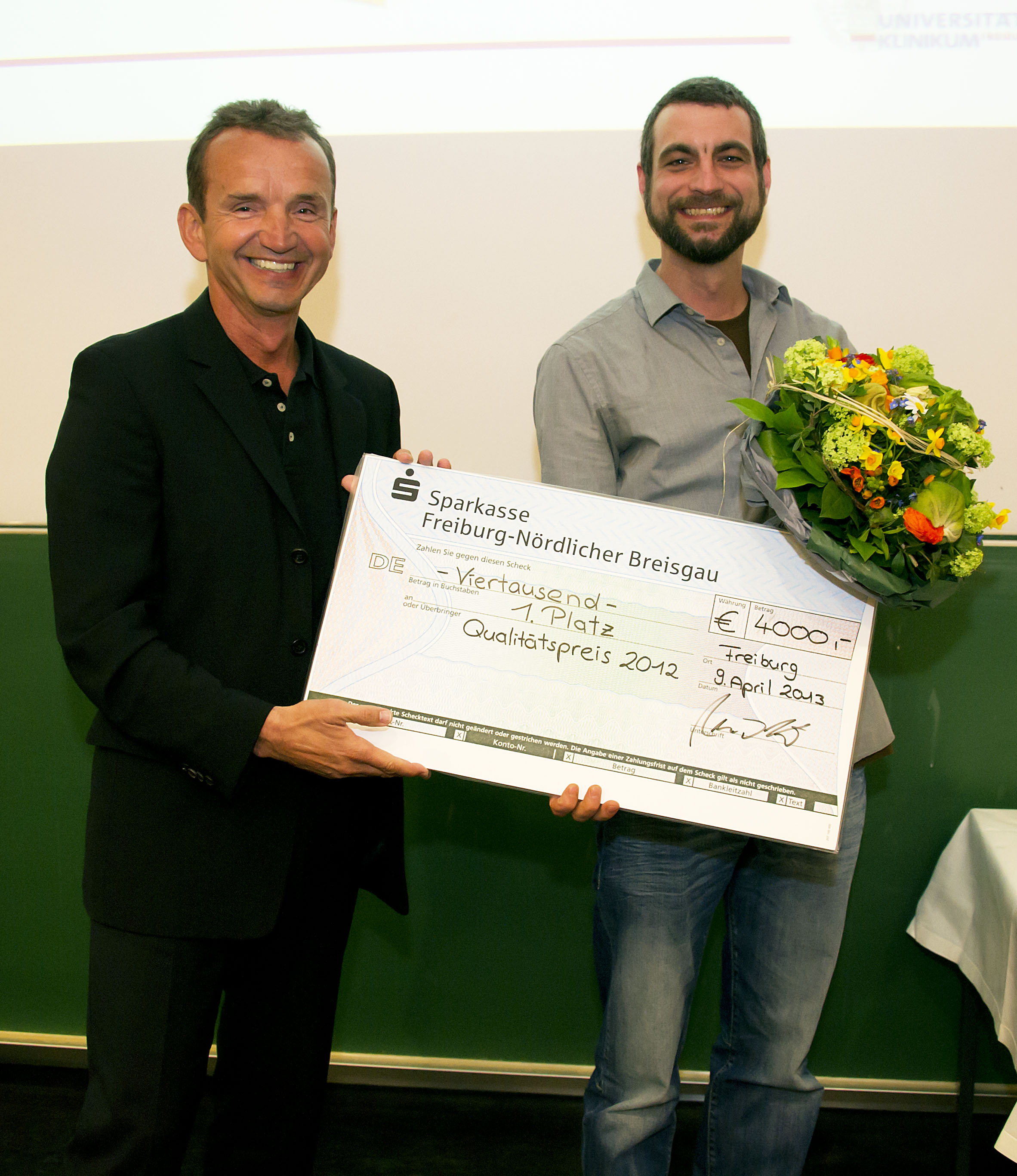 Der Kaufmännische Direktor Reinhold Keil hat den Qualitätspreis 2012 des Universitätsklinikums Freiburg übergeben