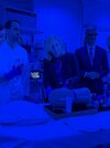 Bild 4: Gesundheitsministerin Warken übte unter realen Bedingungen. Wie bei endoskopischen Eingriffen üblich, war im Endoskopieraum die Beleuchtung bläulich.