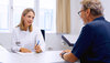 PD Dr. Elisabeth Schorb klärt einen Patienten über die Teilnahme an einer klinischen Studie auf.