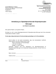 Anmeldeformular Sprechstunde für Körperdysmorphe Störungen