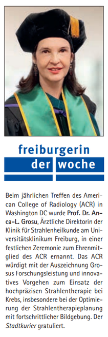 Stadtkurier - Prof. Dr. A. Grosu Freiburgerin der Woche