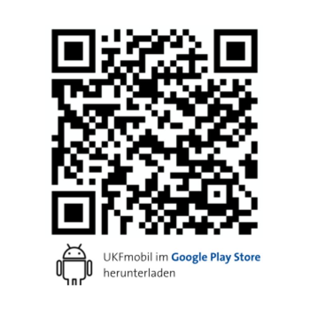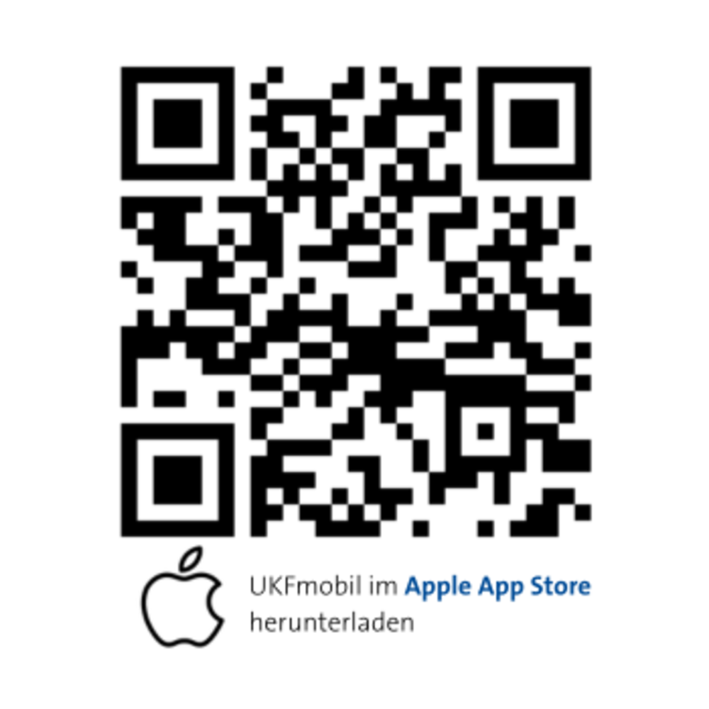 Die App ist hier für Apple-Geräte (iOS) und hier für Android-Geräte verfügbar. Alternativ gelangen Sie zum Download, wenn Sie den jeweiligen QR-Code mit ihrem Handy einscannen. Bitte beachten Sie, dass die UKFmobil App nicht über die Suchfunktion im Apple App Store gefunden wird. Updates funktionieren nach der Erstinstallation wie gewohnt über den App Store.