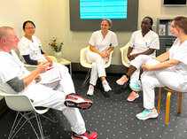 Es besteht die Möglichkeit bei speziell ausgebildeten Pflegefachpersonen eine Hospitation durchzuführen. Für Auszubildende aus der Pflege werden regelmäßig Hospitationen bei Wundexpert*innen, den Stomatherapeut*innen, den Pflegeexpert*innen, dem zentralen Aufnahmebereich und eine OP-Begleitung geplant, um die Arbeit mit speziellen Lernaufgaben unserer Fachkräfte kennenzulernen.