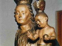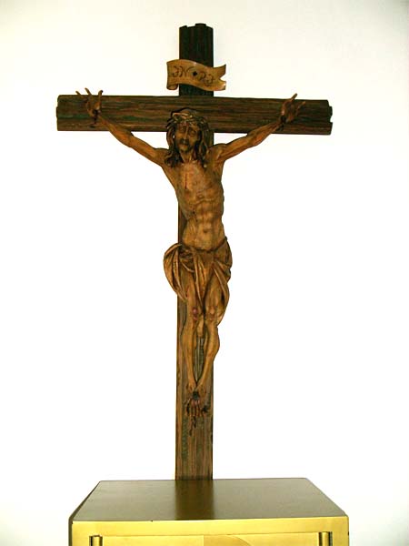 | Im Chorbereich, hinter dem Altar | Biblische Szenen Wandgestaltung aus Mosaikglas |
