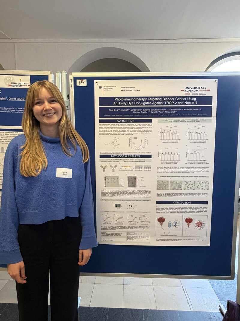 Wir freuen uns sehr, Nora Giess als neue medizinische Doktorandin in unserer Arbeitsgruppe begrüßen zu dürfen. Sie wird uns in den kommenden Monaten im Bereich der Photoimmuntherapie des Harnblasenkarzinoms unterstützen und dabei eigene spannende Forschungsfragen bearbeiten. Herzlich Willkommen, Nora – wir freuen uns auf die Zusammenarbeit!