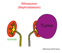 Bei dem sog. Wilmstumor oder Nephroblastom handelt es sich um schnell wachsende Tumore aus embryonalem Gewebe, die in den allermeisten Fällen von einer Niere ausgehen. Sie machen ca. 5% der Tumorerkrankungen bei Kindern aus. Die meisten dieser Tumore werden von ihrer Kinderärztin oder Kinderarzt in den U-Untersuchungen festgestellt, indem der Bauch abgetastet wird. Hier zeigt sich eine Schwellung des Bauches oder eine Resistenz beim Abtasten. Sollte der Verdacht auf einen Tumor bestehen, sollte eine weitere Abklärung in der Kinderklinik erfolgen.