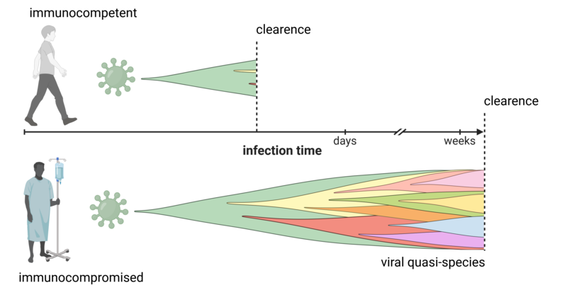 Viruses exists as mutant swarms, so called viral quasi-species, that allow flexible adaptions to external selection pressures (such as antiviral treatment or the hosts’ immune system). We are particular interested how viral quasi-species populations change during persistent infections in e.g. the immunosuppressed host. Therefore, we are working on several different viruses including Hepatitis E, SARS-CoV-2 and HSV-1.