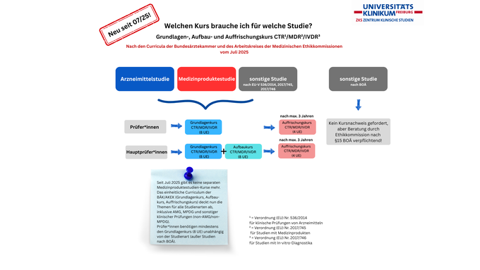 Die Bundesärztekammer und der Arbeitskreis medizinischer Ethikkommissionen (AKEK) haben eine Neuordnung der Kursstrukturen für die Prüferqualifikation im Juli 2025 verabschiedet. Wir werden unser Kursangebot bis zur Übergangsfrist Juni 2026 beständig dahingehend aktualisieren und informieren Sie an dieser Stelle. Ihre bisherigen Zertifikate behalten weiter ihre Gültigkeit.